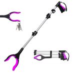 1.Easy Reach: The ergonomic handle ensures a comfortable grip, allowing you to easily reach objects in high, low, far, and narrow areas. The gripper clutches and releases with a simple press of a button, providing convenience in retrieving items.