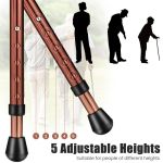 3.Durable and Lightweight Design: The walking cane with seat is made of heavy-duty aluminum alloy, which is sturdy, durable, and not easy to deform or break, ensuring a large loading capacity of 220 lbs. Meanwhile, it only weighs 2.5 lbs, which is convenient to carry.