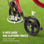 3.Enhanced Mobility: Our trio rolling walker for the seniors features 8" front and rear wheels, with the front wheels being 360° rotation, easy to maneuver and providing excellent control. The upgraded textured tire surface boosts outstanding slip resistance, enabling stable walking on asphalt, grass, stone roads, and more.